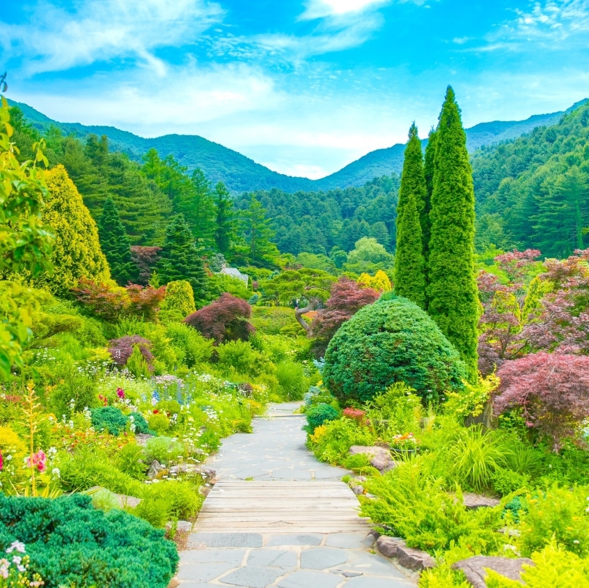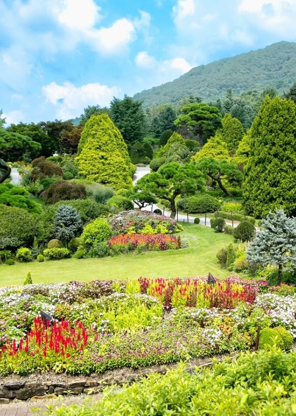 아침 고요수목원은 계절마다 그 모습이 완전히 달라져요. 봄에는 튤립과 철쭉, 여름엔 수국과 장미, 가을엔 단풍과 국화, 겨울엔 설경과 조명이 만들어내는 환상적인 풍경까지! 각 계절의 특색을 담은 테마정원들이 잘 구성되어 있어서 갈 때마다 다른 감동을 주더라고요.